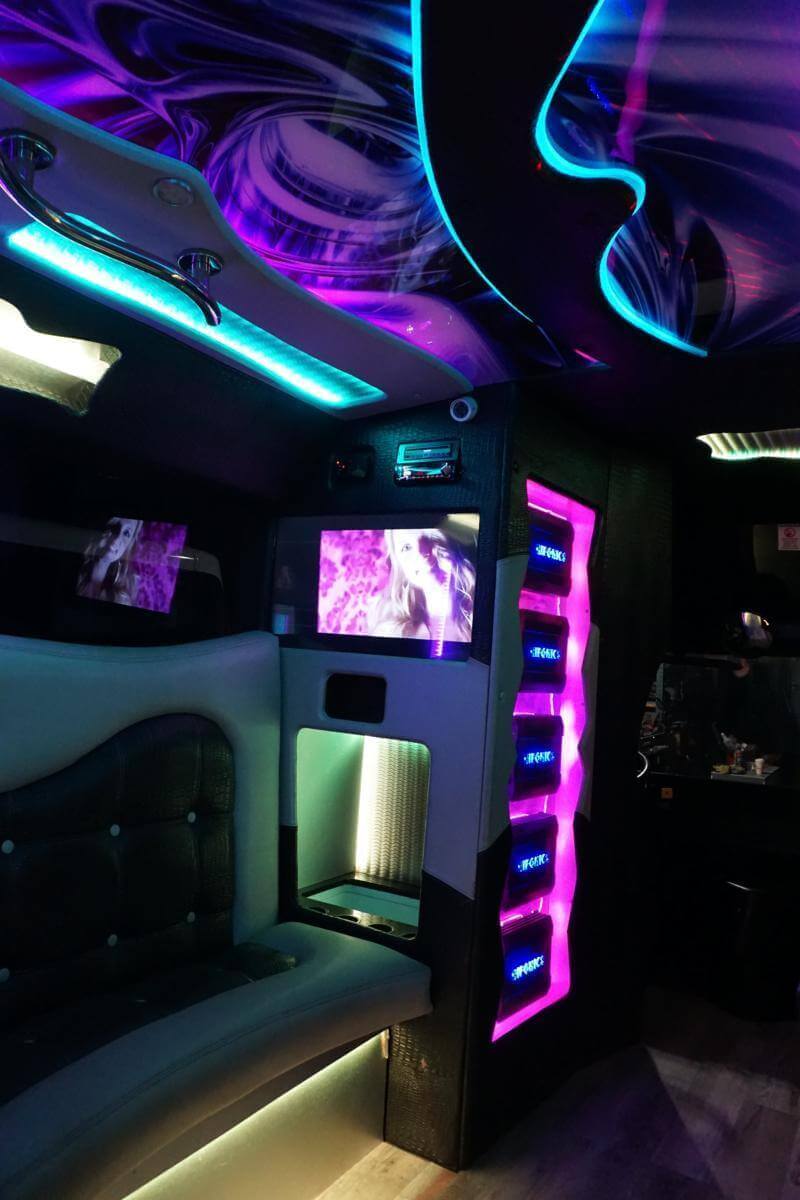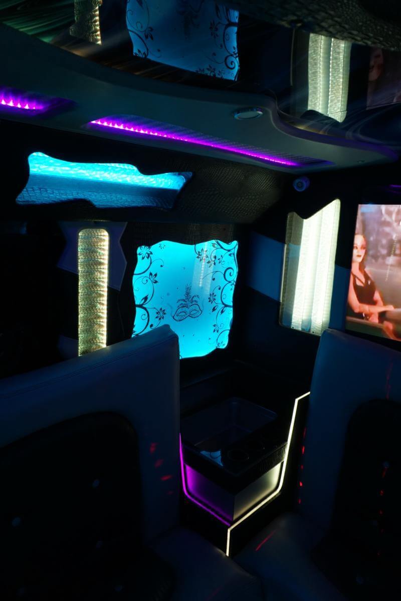 Add to that our state-of-the-art CD/MP3/DVD/iPod/ and AM-Fm radio sound system blasting out your favorite tunes through 10,500-watt speakers, and you can be guaranteed we will put you right in the party mood without fail.